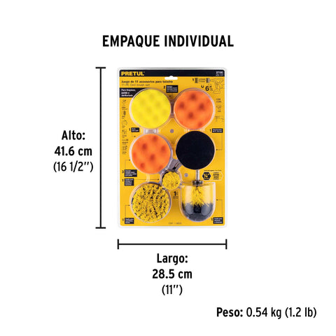 Juego 11 accesorios de limpieza y pulido p/taladro, Pretul | JCE-11P | 27190