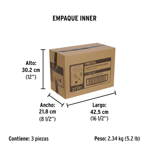 Juego 12 accesorios de limpieza y asentado p/taladro, Pretul | JCE-12P | 27191