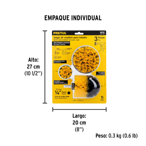 Juego de 3 cepillos multiusos para taladro, Pretul | JCE-3P | 28152