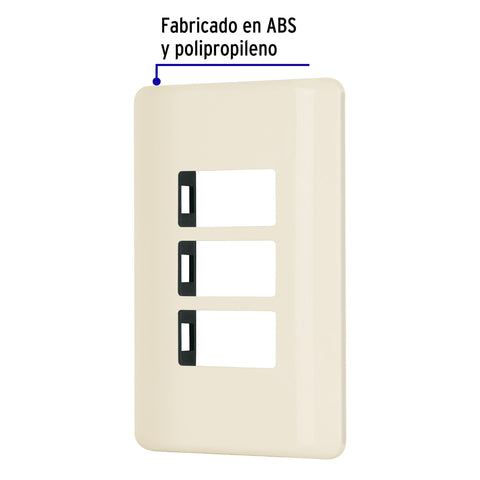 Placa 3 módulos, marfil, línea Volteck Basic | PPTR-BI | 27233