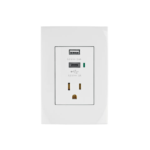 Toma con 2 puertos USB, 1.5 módulos, línea Española, blanco | C2USB-EB | 47057