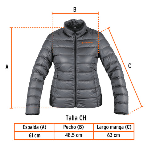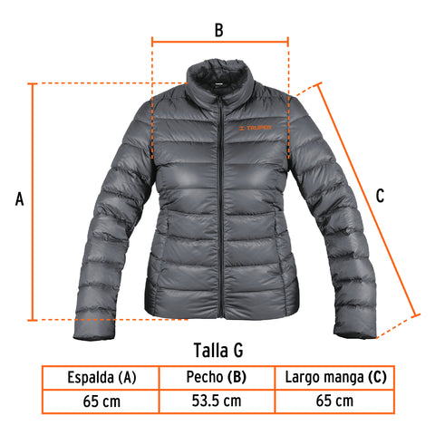 Chamarra de plumas ligera para mujer, gris, G, TRUPER | CHAM-GD-G | 66006