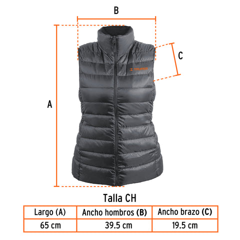 Chaleco de plumas ligero para mujer, gris, CH, TRUPER | CHA-GD-C | 69993