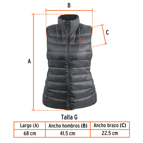 Chaleco de plumas ligero para mujer, gris, G, TRUPER | CHA-GD-G | 69995