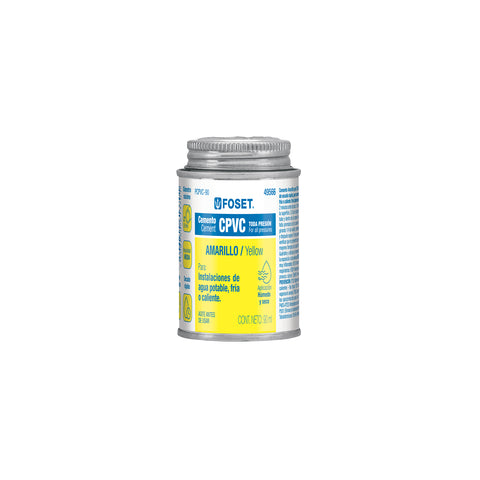 Cemento p/CPVC, amarillo, toda presión, lata 90ml, FOSET | PCPVC-90 | 49566