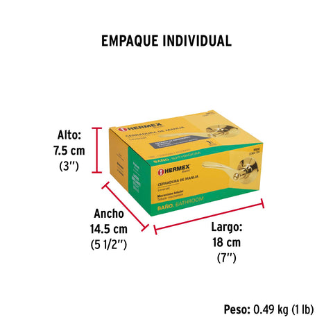 Cerradura manija 'Siena' p/recámara, latón brillante, HERMEX | CEMA-11R | 47421