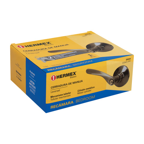 Cerradura manija 'Siena' p/recámara, latón antiguo, HERMEX | CEMA-12R | 49419