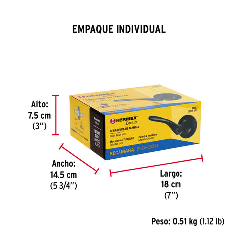 Cerradura manija 'Siena' p/recámara, negro mate, HERMEX | CEMA-16R | 48431