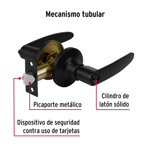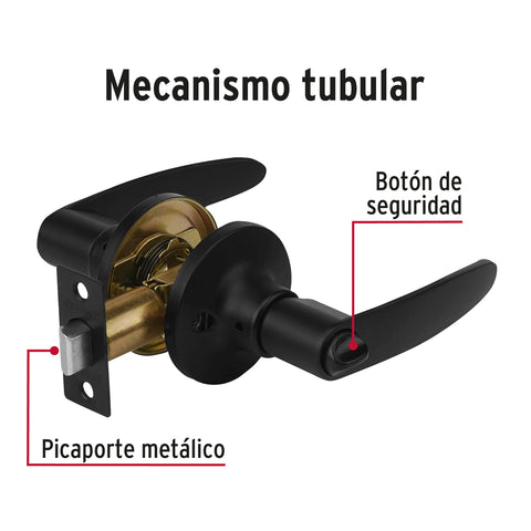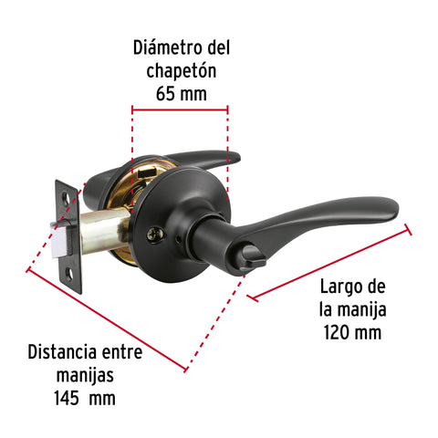 Cerradura manija 'Turín' p/recámara, negro, cilindro latón | CEMA-6R | 49852