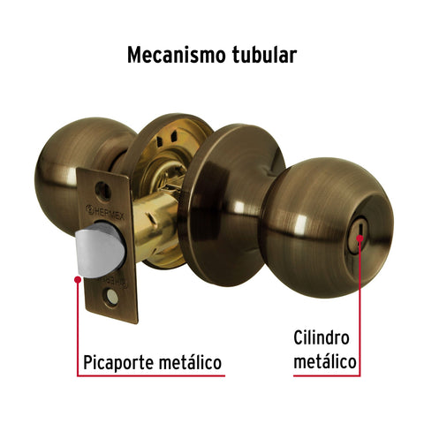 Cerradura tipo esfera, tubular, baño, antiguo, HERMEX BASIC | BALT-LA-BP | 23662