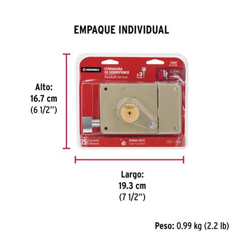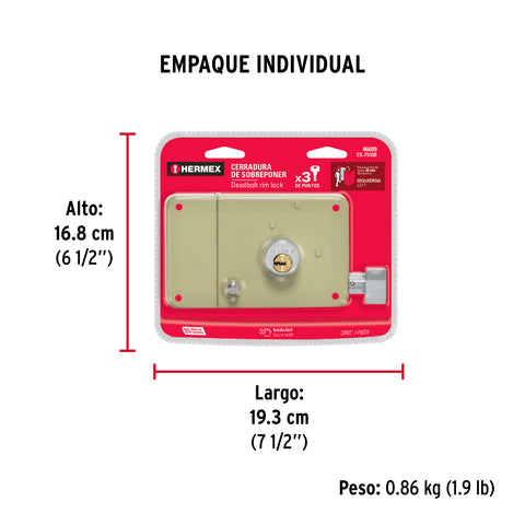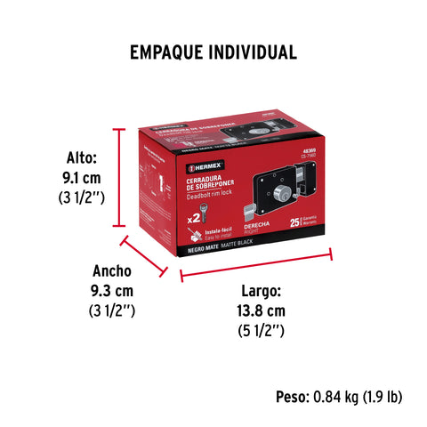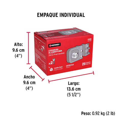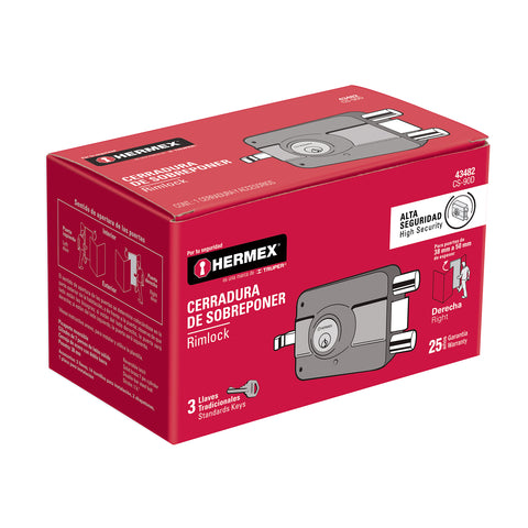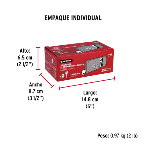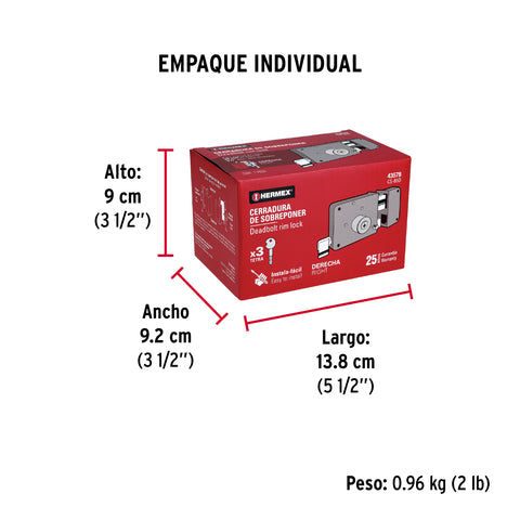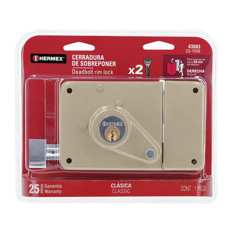 Cerradura sobreponer der instala-fácil, caja, HERMEX BASIC | CS-75DP | 27047