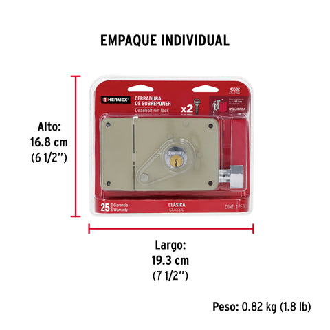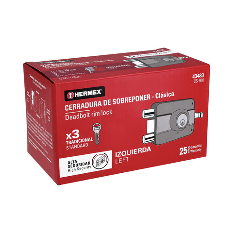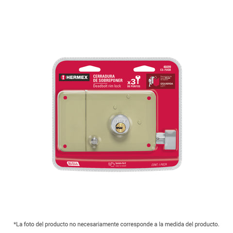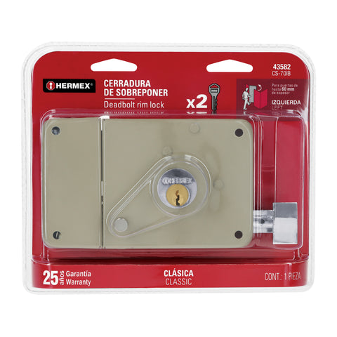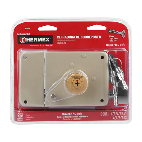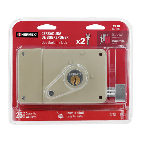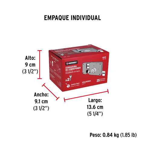 Cerradura sobreponer izq instala-fácil, caja, HERMEX BASIC | CS-75IP | 27046