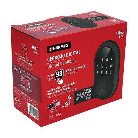 Cerrojo Digital tubular color negro, HERMEX | CD-26 | 49093