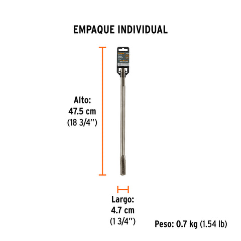 Cincel plano delgado SDS Plus 3/4' x 10', Truper | SDS-C1 | 12096