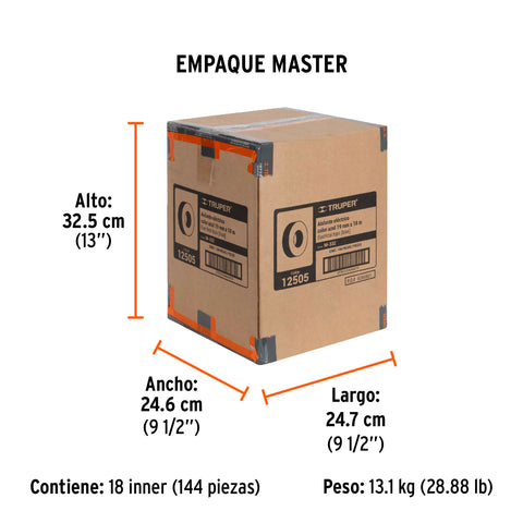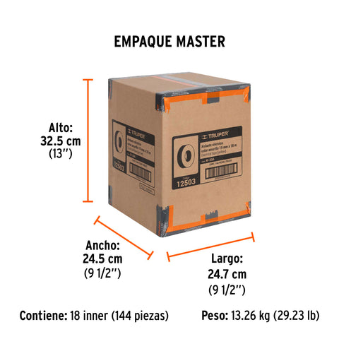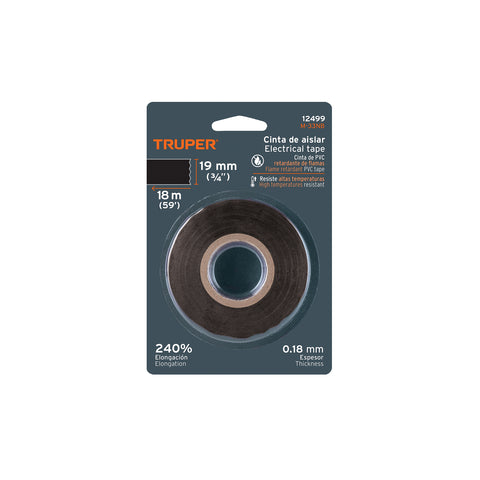 Cinta de aislar de 18 m x 19 mm, negra, Truper | M-33 | 12500
