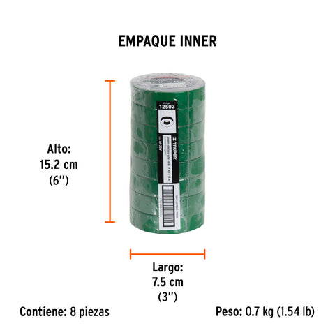 Cinta de aislar de 18 m x 19 mm, verde, Truper | M-33V | 12502