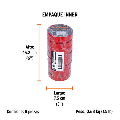 Cinta de aislar de 9 m x 19 mm, roja, Truper | M-22R | 13513