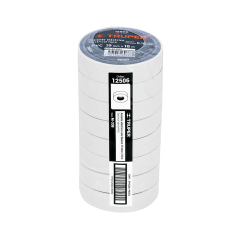 Cinta de aislar de 18 m x 19 mm, blanca, Truper | M-33B | 12506