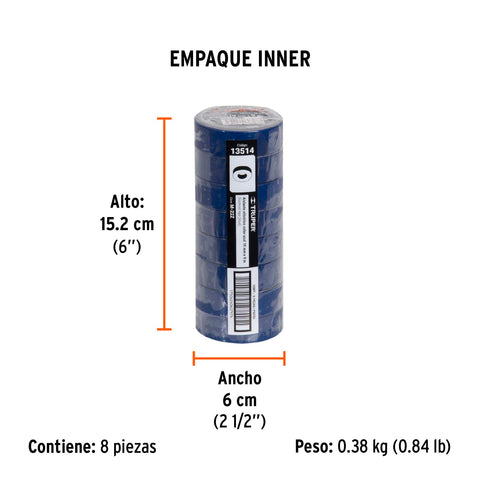 Cinta de aislar de 9 m x 19 mm, azul, Truper | M-22Z | 13514