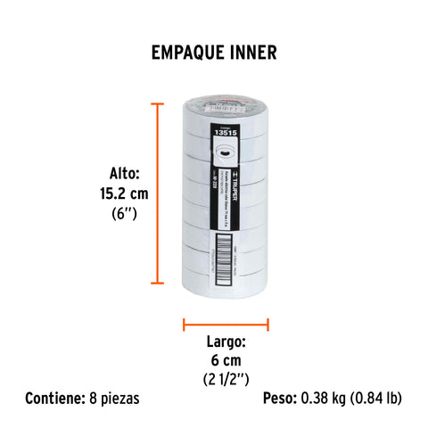 Cinta de aislar de 9 m x 19 mm, blanca, Truper | M-22B | 13515