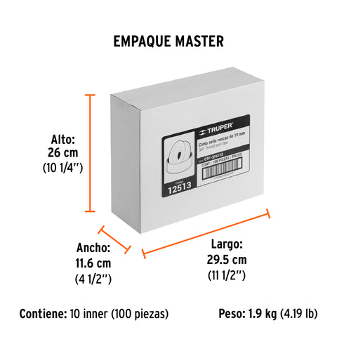 Cinta sella roscas 3/4' x 13m, uso general, TRUPER | CTF-3/4X13 | 12513
