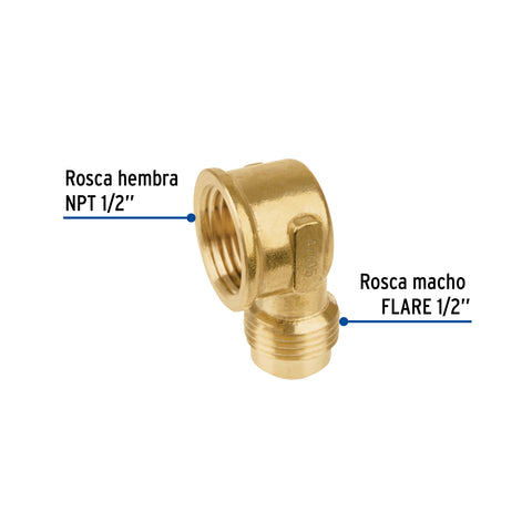 Codo para estufa a 90° de latón de 1/2 x 1/2', FOSET | CLG-523 | 47405