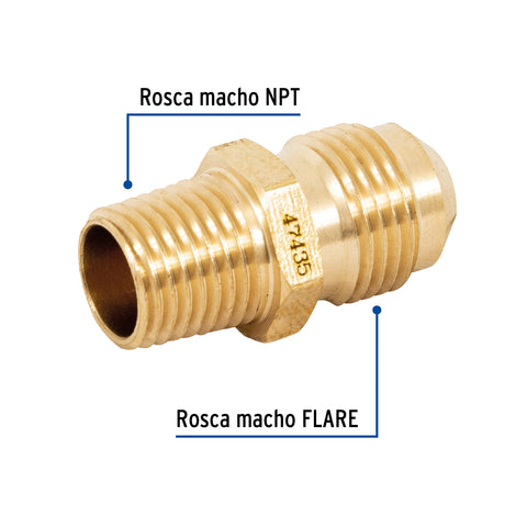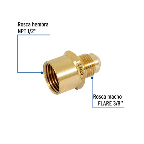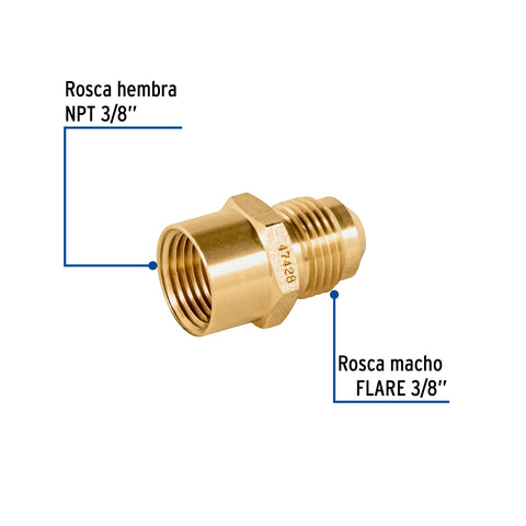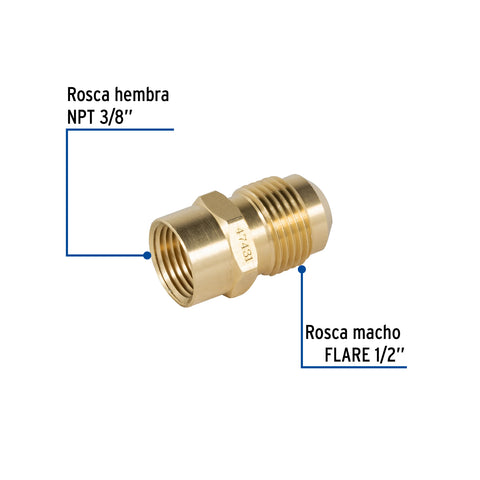 Conector flare soldable de latón, 3/8' x 1/2', FOSET | CLG-646 | 47455