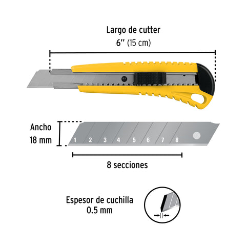 Cutter 18 mm reforzado de plástico con alma metálica, Truper | CUT-6 | 16974