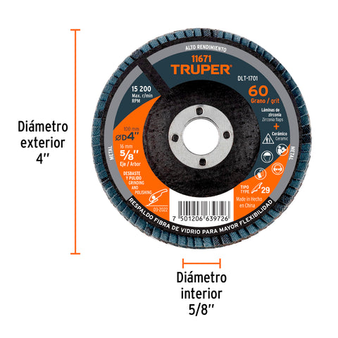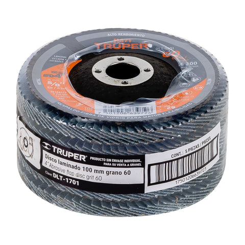 Disco laminado 4', grano 60 centro 5/8', fibra, TRUPER | DLT-1701 | 11671
