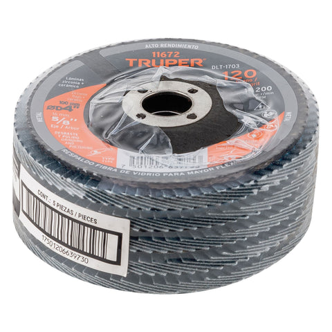 Disco laminado 4', grano 120 centro 5/8', fibra, TRUPER | DLT-1703 | 11672