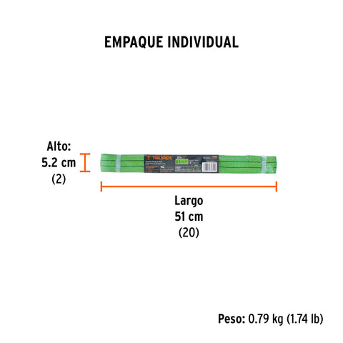 Eslinga de poliéster, ojo a ojo, 2' x 10 m, Truper | ESLI-210 | 17871