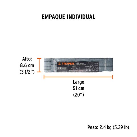 Eslinga de poliéster, ojo a ojo, 4' x 4 m, Truper | ESLI-404 | 17876