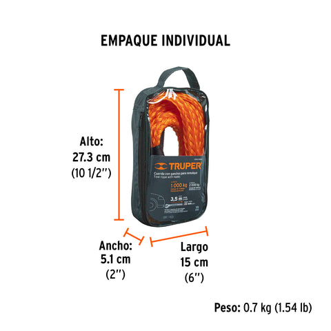 Cuerda con ganchos para remolque, 22 mm x 3.5 m, Truper | CREM-5/8X35 | 18345