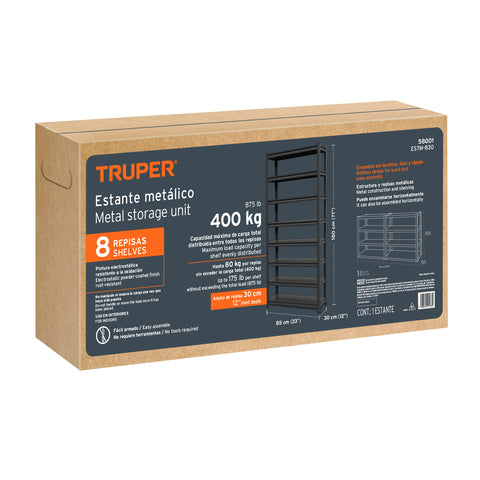 Estante metálico 8 repisas capacidad 80 Kg,180x45x85, TRUPER | ESTM-845 | 58004