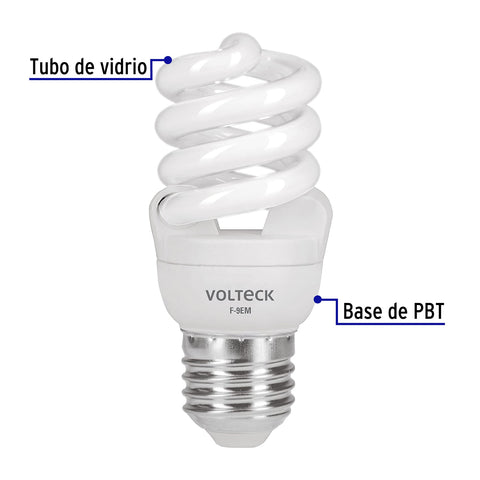 Lámpara espiral mini T2 9 W luz de día en blíster, Volteck | F-9EM | 48500