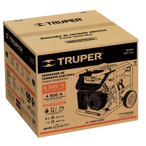 Generador portátil 4.5 kW motor a gasolina, TRUPER | GEN-45X | 15343