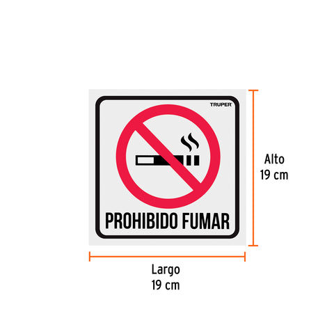 Letrero de señalización 'NO FUMAR', 19 x 19 cm, Truper | LIN-02 | 18293