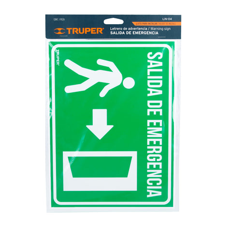 Letrero de señalización 'SALIDA DE EMERGENCIA', 21 x 28 cm | LIN-04 | 18348