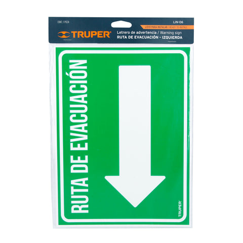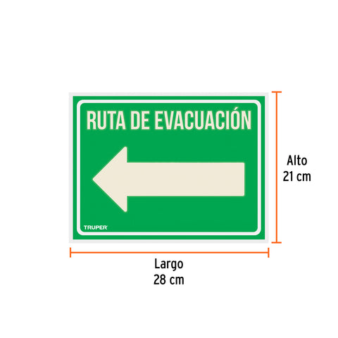 Letrero de señalización 'RUTA EVACUACIÓN IZQUIERDA',21x28 cm | LIN-06 | 18369