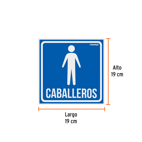 Letrero de señalización 'CABALLEROS', 19 x 19 cm, Truper | LIN-09 | 18474