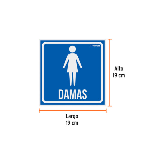 Letrero de señalización 'DAMAS', 19 x 19 cm, Truper | LIN-10 | 18478
