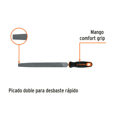 Lima plana bastarda 10' con mango doble inyección, TRUPER | LPB-10T | 11237