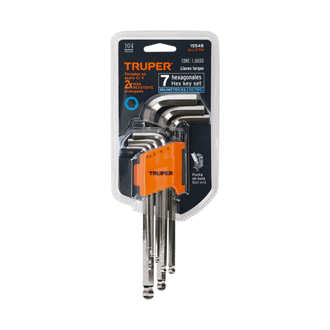 Juego 7 llaves allen largas mm punta bola con organizador | ALLX-7M | 15548