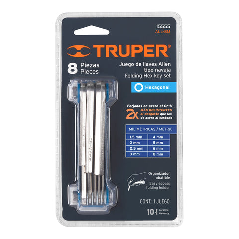 Juego de 8 llaves allen mm tipo navaja, cuerpo de lámina | ALL-8M | 15555