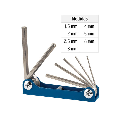 Juego de 7 llaves allen mm tipo navaja, cuerpo de lámina | ALL-7M | 15557