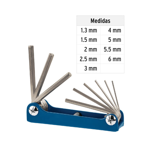 Juego de 9 llaves allen mm tipo navaja, cuerpo de lámina | ALL-9M | 15563