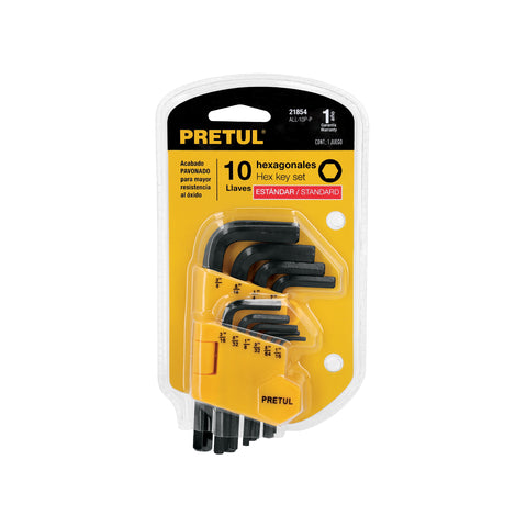 Juego 10 llaves allen std punta hex con organizador, PRETUL | ALL-10P-P | 21854