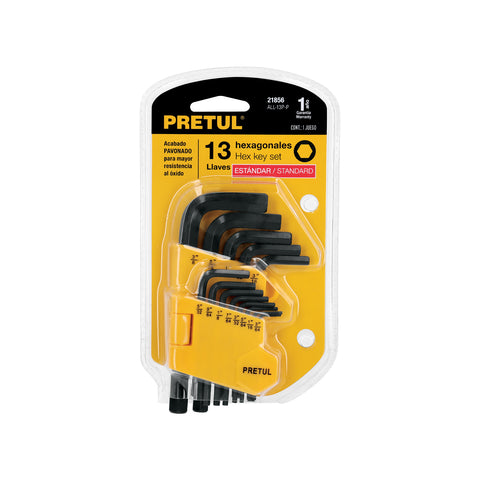 Juego 13 llaves allen std punta hex con organizador, PRETUL | ALL-13P-P | 21856