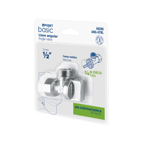 Llave angular 1/2', 1/4 de vuelta, roscable, blíster, FOSET | ANG-01BL | 46299