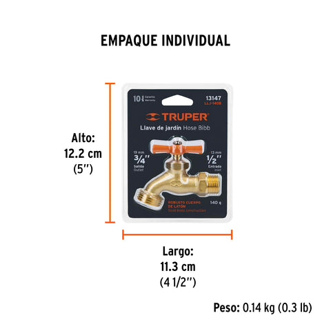 Llave p/manguera, de latón 140g, 1/2', blíster, TRUPER | LLJ-140B | 13147